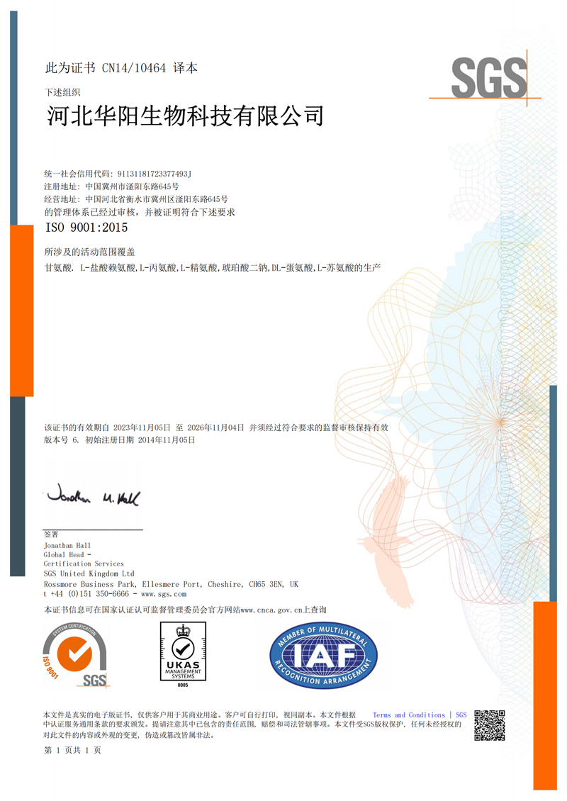 河北華陽集團(tuán)坐落于河北省衡水市冀州區(qū)省級(jí)工業(yè)園區(qū)(始建于1987年,前身為冀州市華陽化工有限責(zé)任公司)。集團(tuán)下屬四個(gè)公司:河北華陽生物科技有限公司、河北華悅氨基酸科技有限公司、滄州華晨生物科技有限公司、衡水市陽力商貿(mào)有限公司。主要生產(chǎn)甘氨酸、L-丙氨酸、L-蘇氨酸、DL-蛋氨酸、L-賴氨酸鹽酸鹽、L-半胱氨酸鹽酸鹽、干貝素等氨基酸系列食品級(jí)產(chǎn)品,廣泛應(yīng)用于食品、飲料、飼料等行業(yè)。......